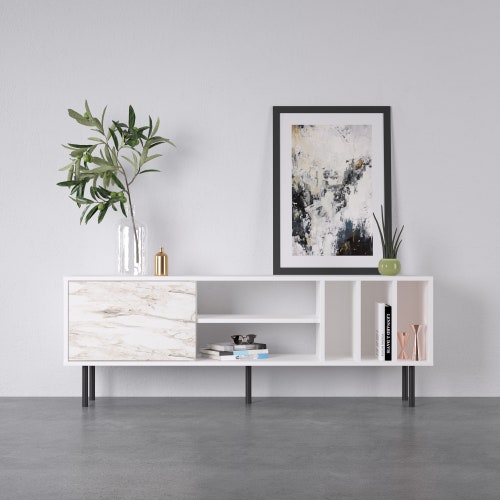 Pietra White Marble Tv Stand Entertainment Center Modern Etsy